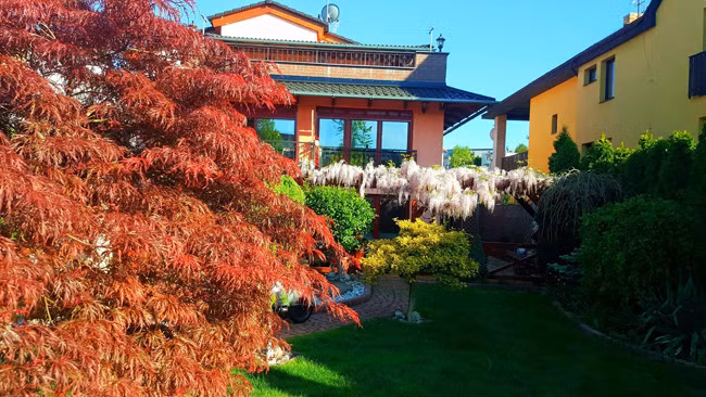 Khu vườn hoa rộng 1.000m2 của chị Kim Cúc (Hà Nội) tại ngôi nhà ở Praha, Cộng hòa Séc đẹp lung linh bởi màu sắc của hoa lá.