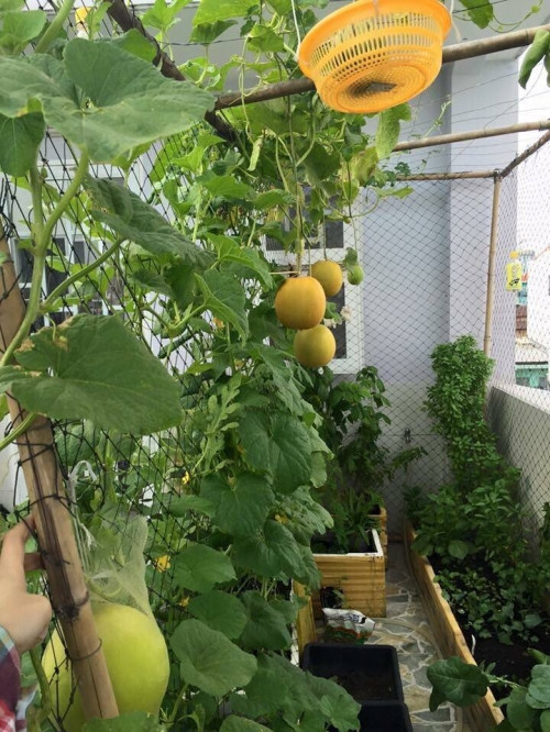 Chia sẻ với PV Báo Người Đưa Tin, Hồng Kiều cho biết cô bắt đầu trồng cây được 1 năm nay và đặc biệt thích trồng dưa lưới. Ban đầu, để có một vườn rau trên sân thượng như này, Kiều phải học kinh nghiệm trồng cây. Cô đã lên mạng tìm hiểu, kết bạn với anh chị trên diễn đàn về trồng cây quanh nhà, nghe họ chia sẻ kinh nghiệm, học hỏi từ từ. Cứ thế, vườn cây của Kiều dần dần xanh tốt.