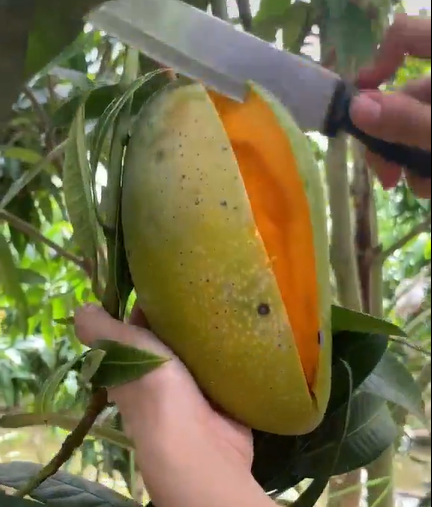 Mãi tới khi xem người ta bổ quả xoài trên cây thì cư dân mạng mới hiểu nguyên do.