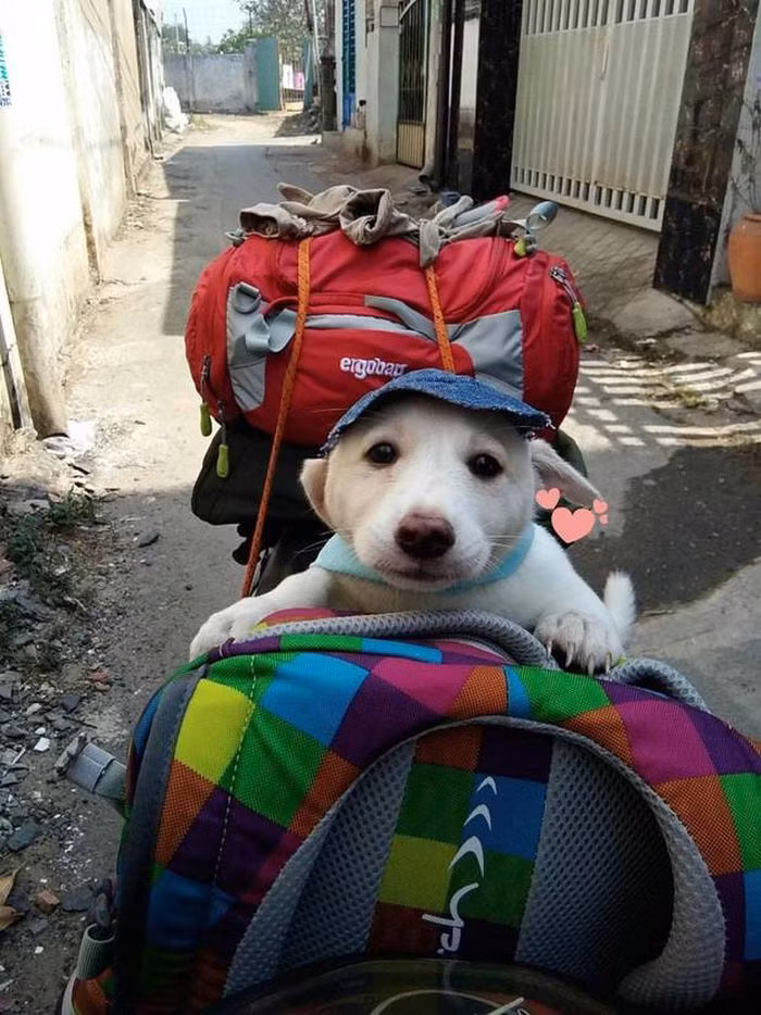 Các pet mà nhỏ bé thì nhét hẳn vào cặp rồi đeo theo. Đôi khi các "sen" còn cẩn thận mặc áo cho đỡ gió lạnh.