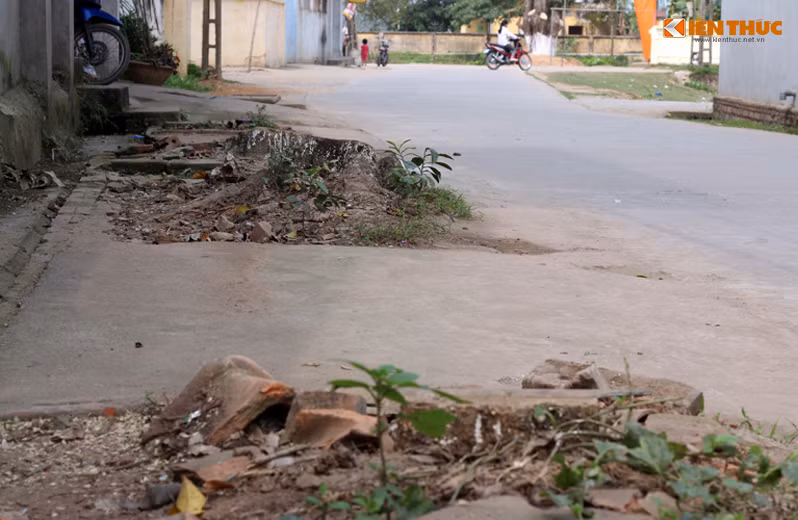 Đường liên thôn xã Cẩm Yên gần như không còn bóng mát nào sau khi hàng loạt cây xanh bị chặt hạ.