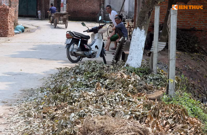 Mùn cưa của những cây xanh trong quá trình bị chặt hạ vẫn vương vãi khắp nơi trên đường làng thôn Yên Lỗ (xã Cẩm Yên, Thạch Thất, Hà Nội).