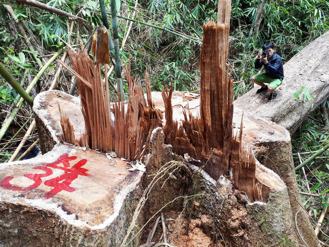 Ghi nhận có hàng chục cây lim xanh hàng trăm năm tuổi, nhiều cây có đường kính từ 1-2 m bị đốn hạ. Một một gốc cây bị đốn hạ, lâm tặc xẻ phách tại chỗ, cho trâu kéo gỗ ra ngoài. Một số cây bị đốn hạ nhưng chưa kịp xẻ phách nằm ngổn ngang. Nhiều gốc cây vết cắt còn mới, nhựa cây chưa khô. Nhưng cũng có những cây vết cắt đã cũ, lá cây phủ dày lên trên. Điều này chứng tỏ khu rừng đã bị triệt hạ trong thời gian khá dài.