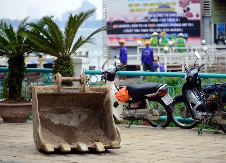 Hàng trăm công nhân tham gia tháo dỡ các công trình cầu dẫn, sàn cứng của nhà nổi số 2 Nguyễn Đình Thi.