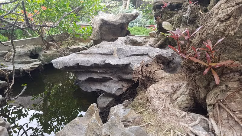 Chỉ có một nhúm đất nhỏ còn sót lại trong các khe đá và bị bộ rễ giữ chặt. Khối đá theo thời gian cũng đã bị rêu xanh phủ kín.