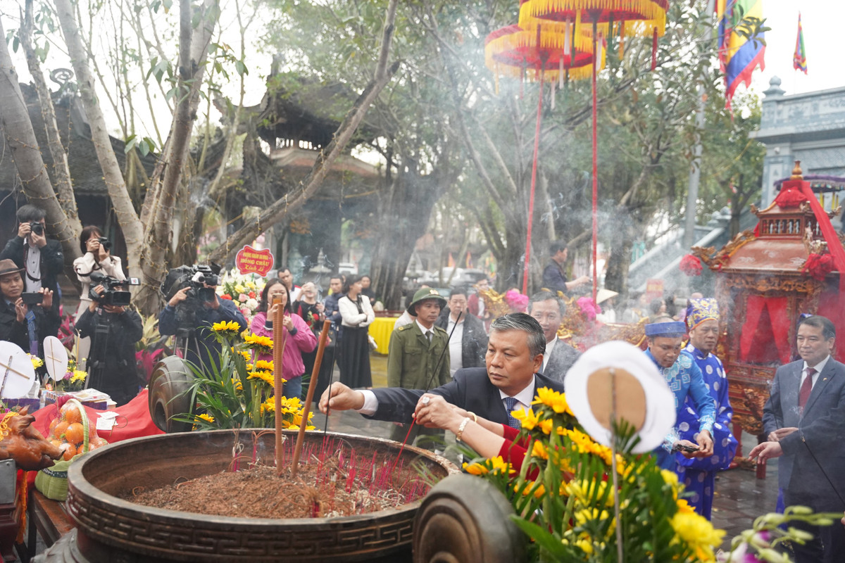Sau lễ khai mạc và công bố quyết định, các đại biểu cùng nhân dân và du khách dâng hương tưởng niệm Quan lớn Tuần Tranh.