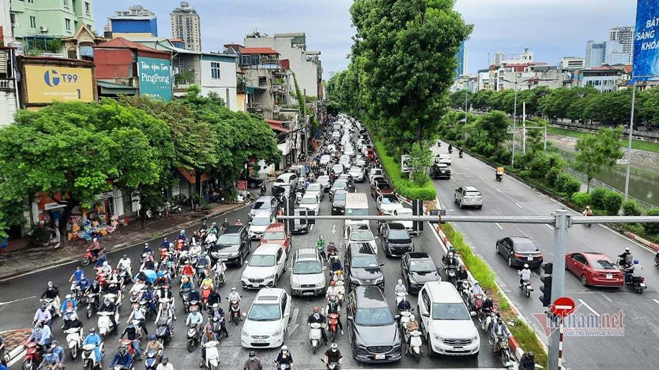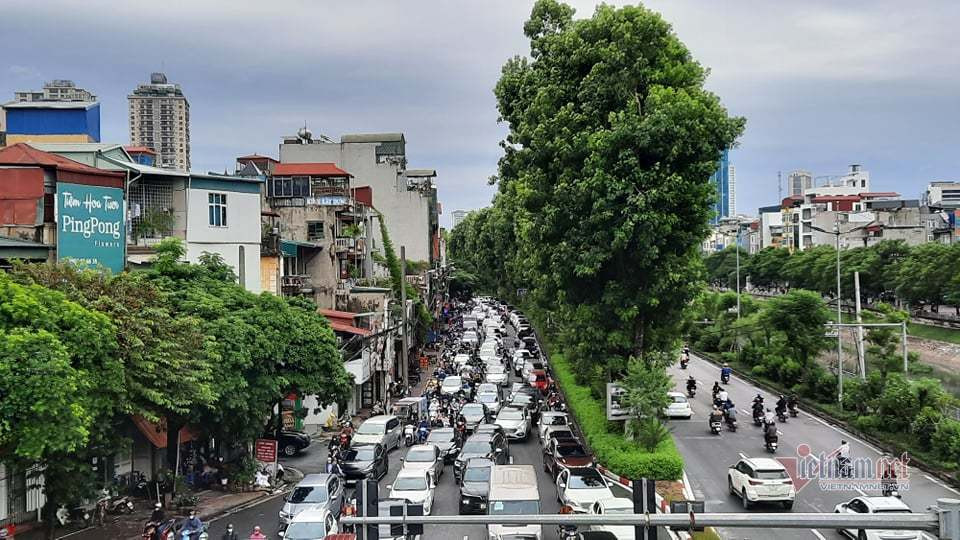 Đường Láng hướng đi Ngã Tư Sở ùn dài