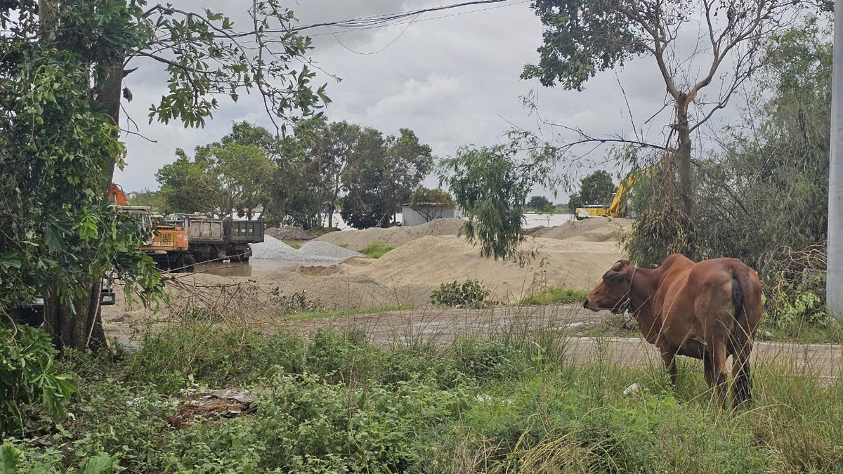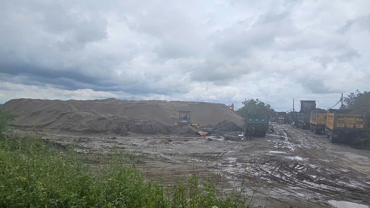 Bến bãi cát chất cao cùng đất thải được tập kết tại đây.