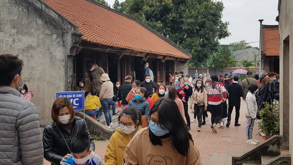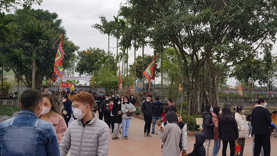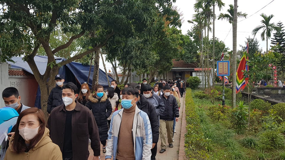 Khách đến lễ đền Bia đều đeo khẩu trang, tuân thủ quy định phòng dịch.