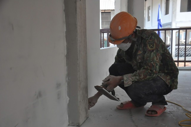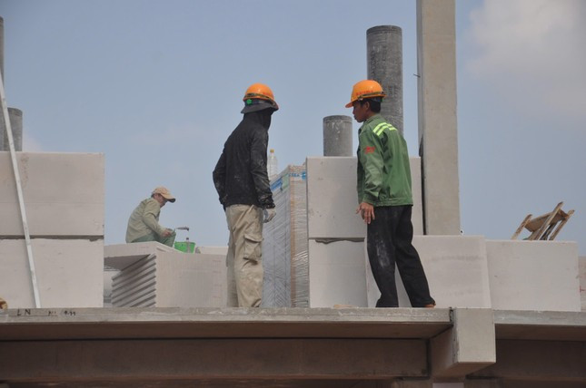 Trên công trường, hàng trăm công nhân lao động miệt mài lắp ráp khung nhà, mái nhà, sàn vách... để sớm hoàn thiện bàn giao cho người dân vào nơi ở mới sớm nhất.
