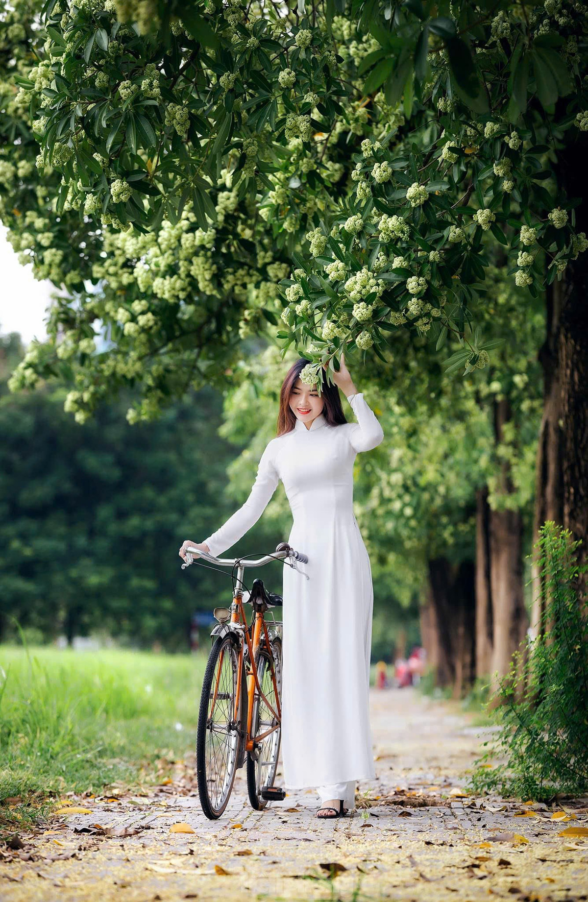 Những gốc hoa sữa sai trĩu trịt với bông hoa li ti cùng nhau bung nở, tạo thành từng chùm hoa lớn đã trở thành điểm check-in phải có trong sổ tay của rất nhiều các "nàng thơ".