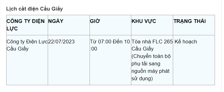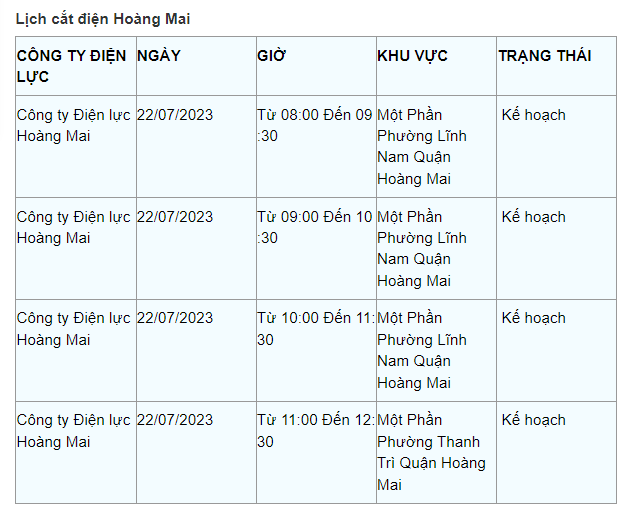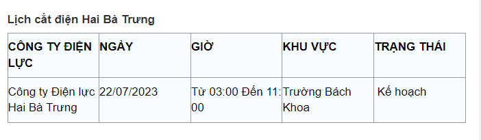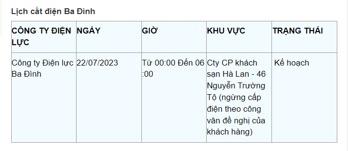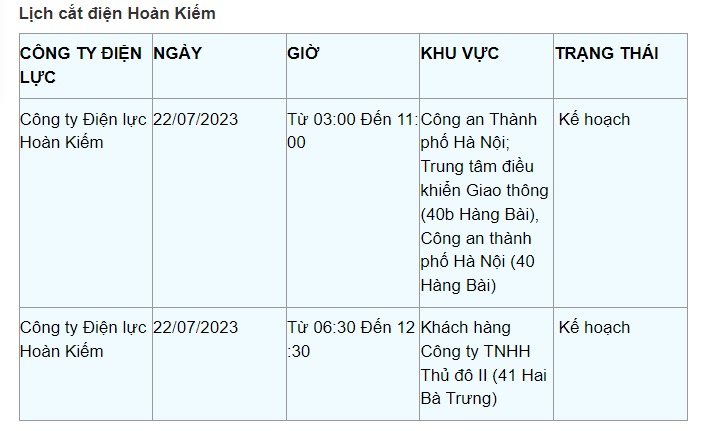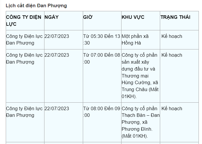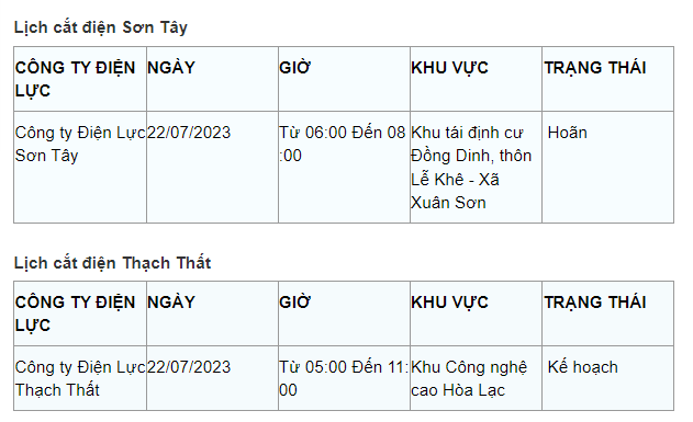 Lịch cắt điện Hà Nội hôm nay mới nhất theo từng khu vực được cập nhật từ cổng thông tin Tổng Công ty Điện lực Hà Nội ngày 22/7/2023.