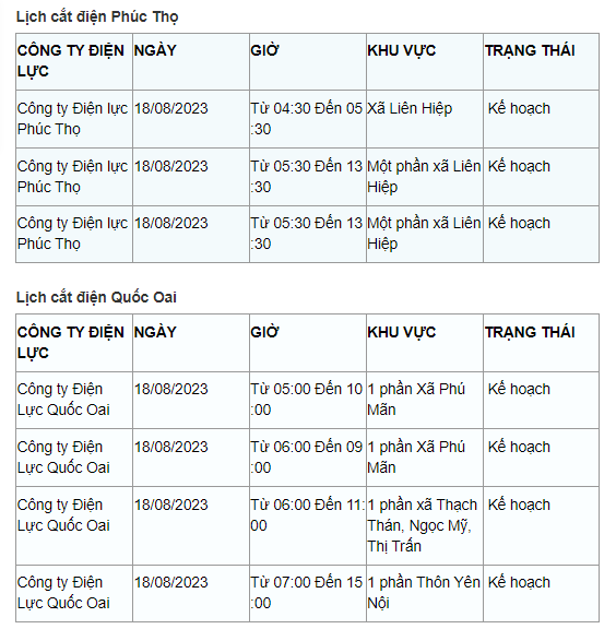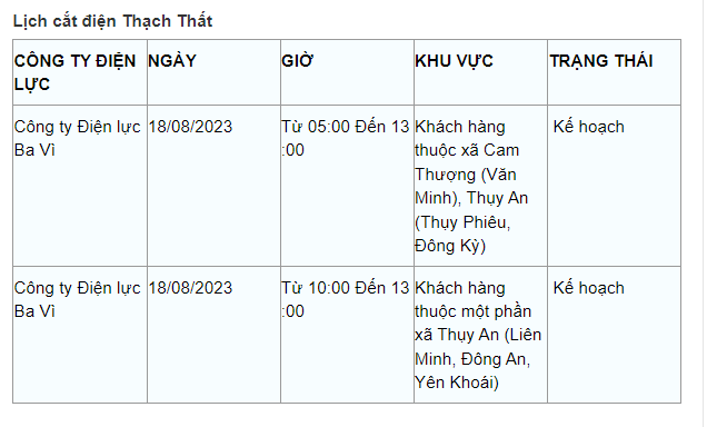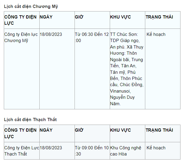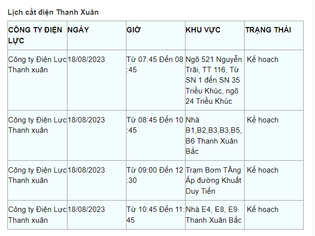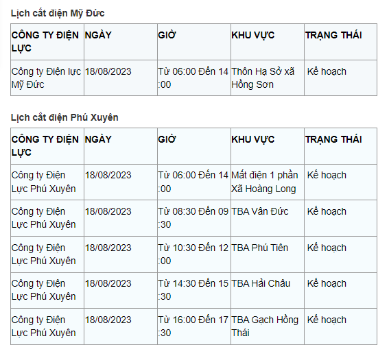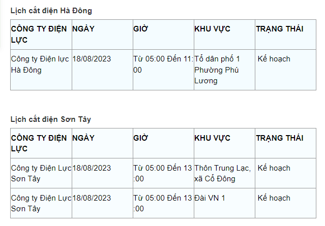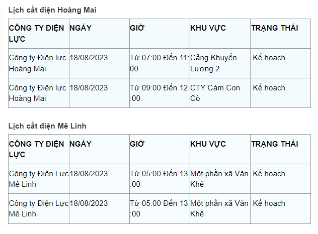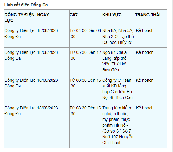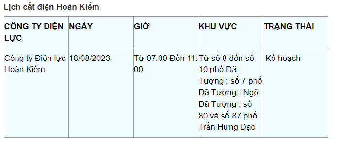 Lịch cắt điện Hà Nội hôm nay mới nhất theo từng khu vực được cập nhật từ cổng thông tin Tổng Công ty Điện lực Hà Nội ngày 18/8/2023.