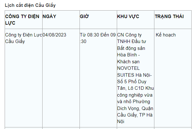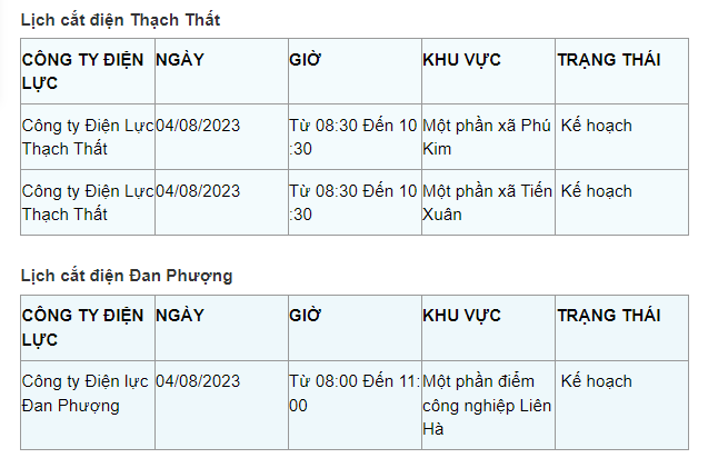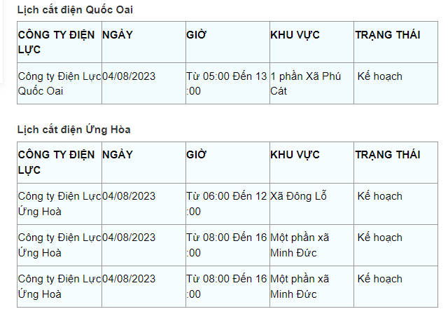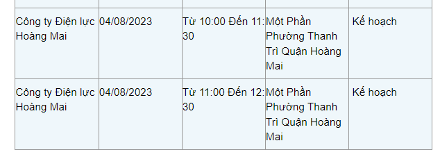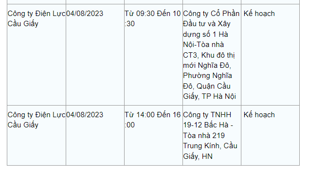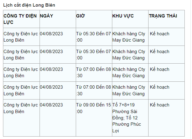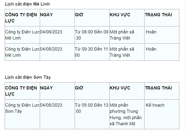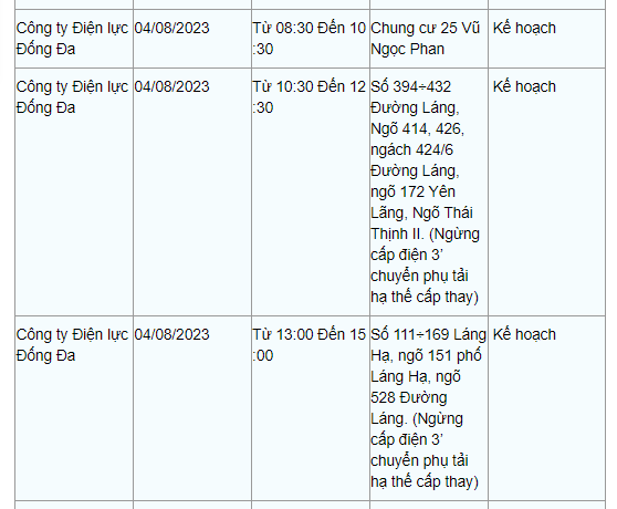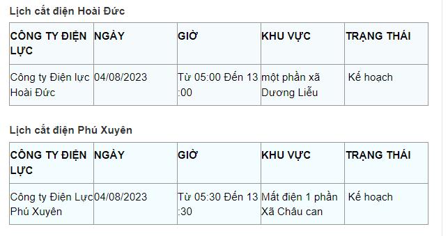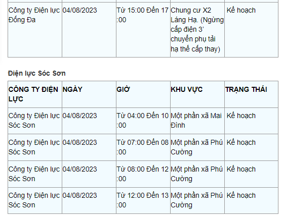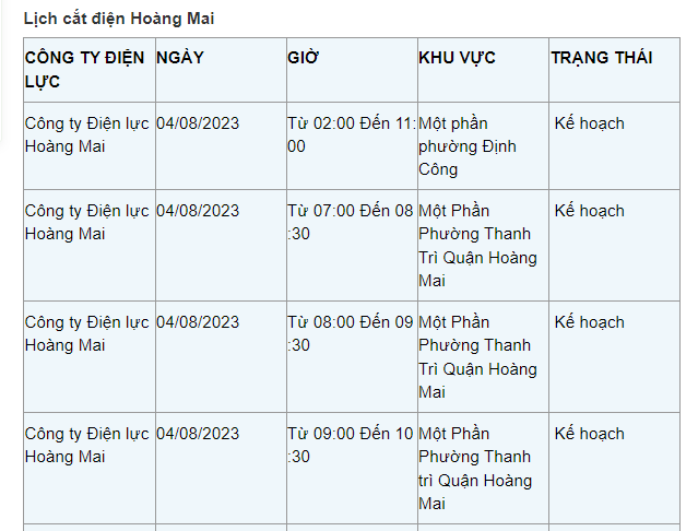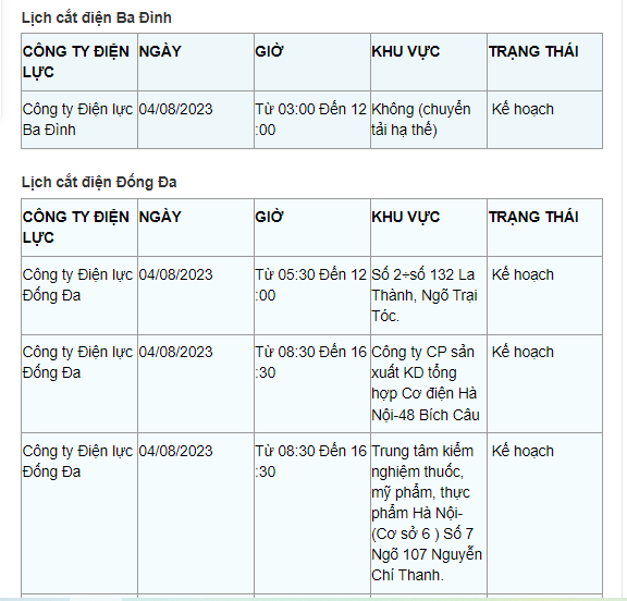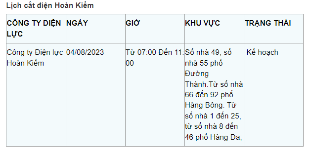 Lịch cắt điện Hà Nội hôm nay mới nhất theo từng khu vực được cập nhật từ cổng thông tin Tổng Công ty Điện lực Hà Nội ngày 4/8/2023.