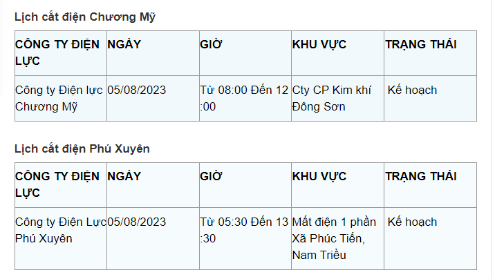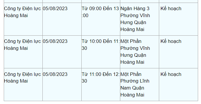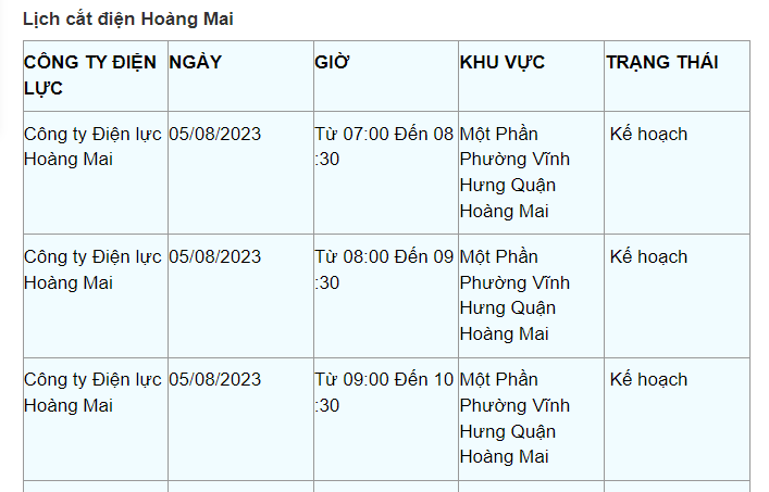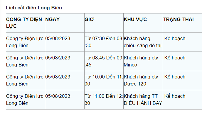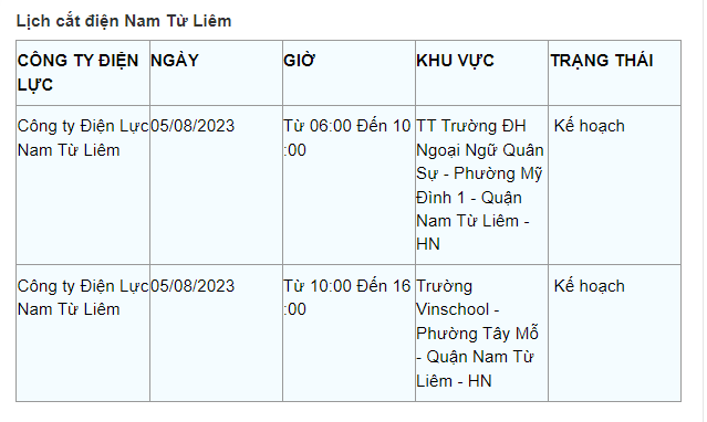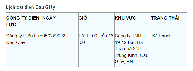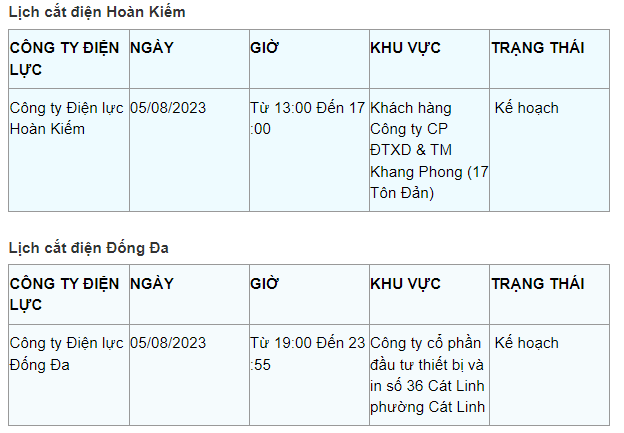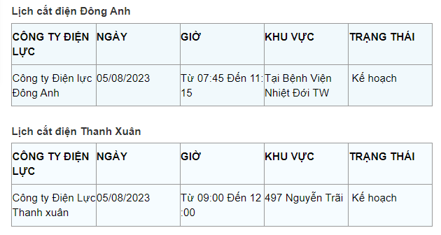 Lịch cắt điện Hà Nội hôm nay mới nhất theo từng khu vực được cập nhật từ cổng thông tin Tổng Công ty Điện lực Hà Nội ngày 5/8/2023.