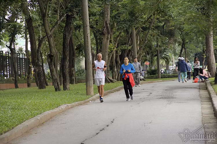 5h sáng, nhiều người Hà Nội bắt đầu tập thể dục như thường lệ.