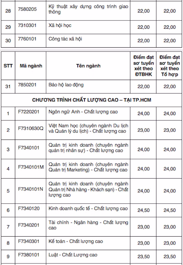 | Điểm chuẩn vào Trường ĐH Kinh tế Tài chính TP.HCM theo phương thức học bạ |