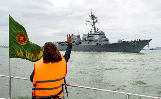 Thủy thủ tàu sân bay Mỹ đội mũ cối ngày tạm biệt Đà Nẵng