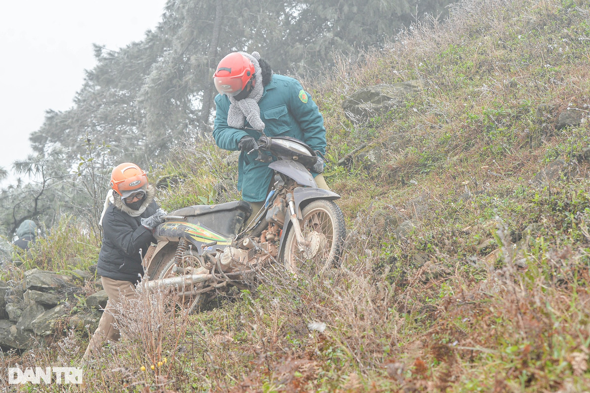 Nhiều người quyết định bỏ lại ô tô bên vệ đường, đi bộ lên đỉnh Mẫu Sơn. "Tôi đỗ tạm ô tô cách đỉnh gần 10km rồi đi bộ lên dần, gặp xe máy nào tiện là vẫy xin đi nhờ xe đấy", chị Hoàng Lụa (quê Bắc Giang) chia sẻ.