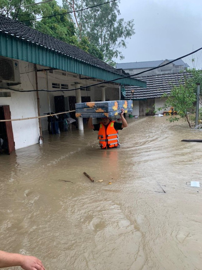 Các chiến sĩ CSGT lội nước dầm mưa, phân luồng giao thông.