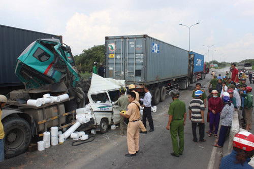 | Xe đi đám cưới về đến cầu Rạch Miễu bị TNGT làm 8 người thương vong. Ảnh: Hải Đường |