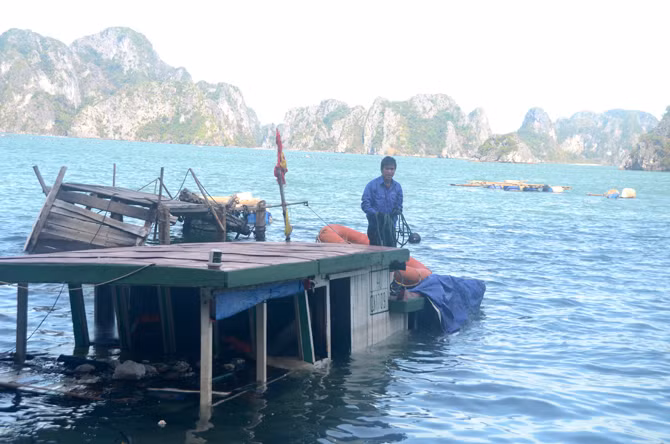 Xác tàu thuyền, lồng bè vây Bái Tử Long sau siêu bão Hải Yến