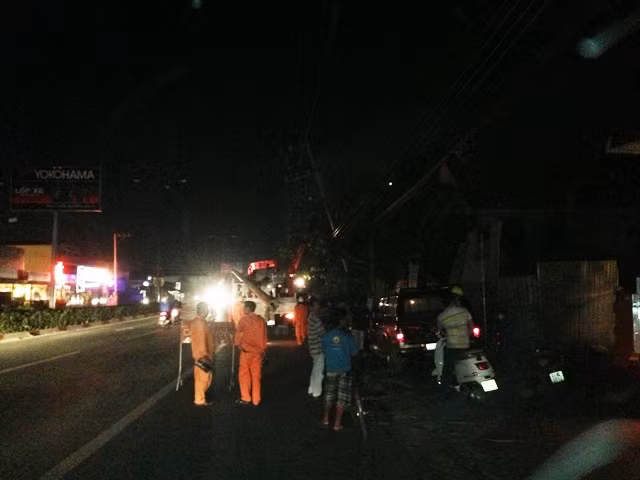 Điện lực Thuận An đã điều hàng chục cán bộ, nhân viên đến hiện trường cùng đầy đủ trang thiết bị để khẩn trương khắc phục sự cố, sớm khôi phục lại nguồn điện để cung cấp cho người dân.