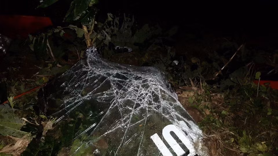 | Những mảnh vỡ xe ô tô tại hiện trường. |