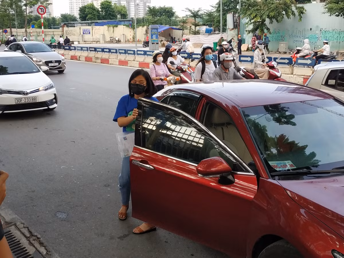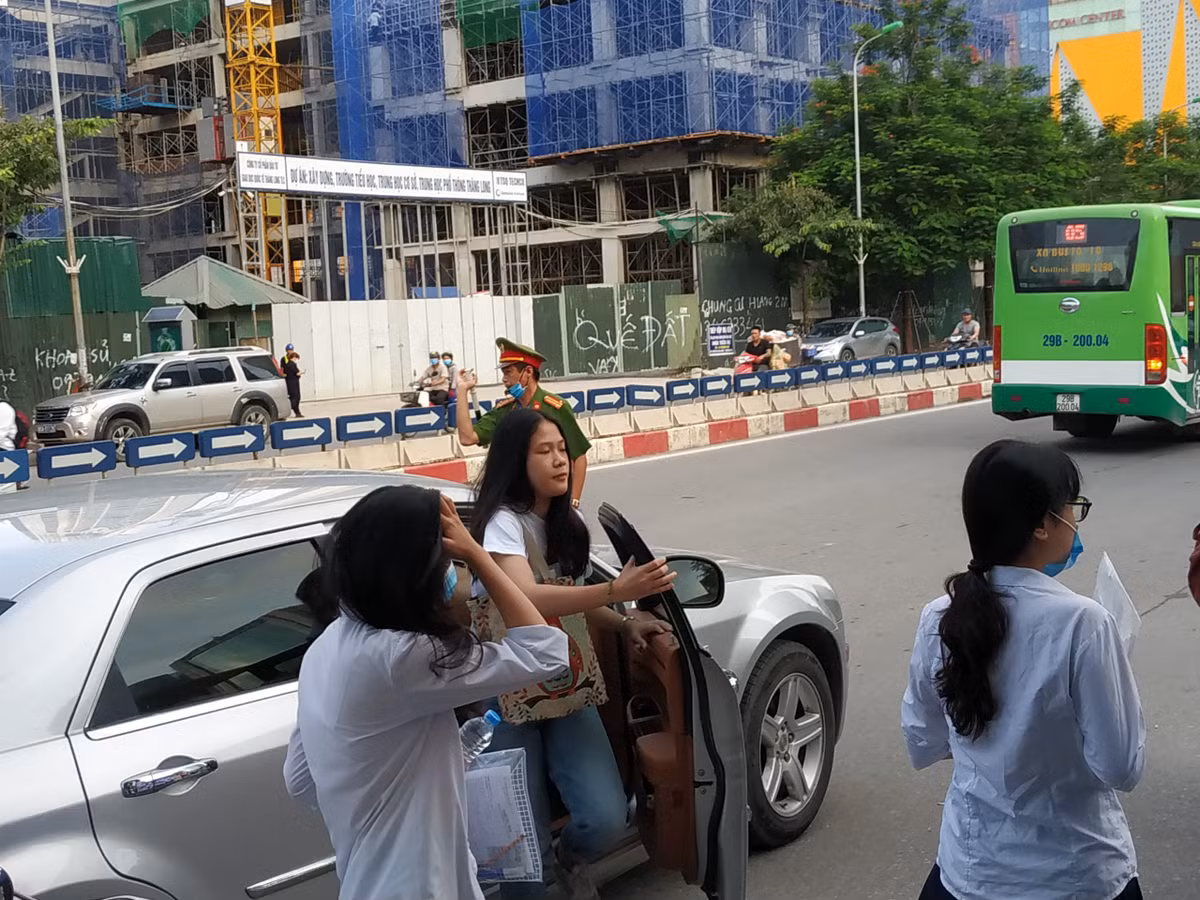 Phụ huynh đưa con đến địa điểm thi rồi nhanh chóng rời đi tránh cảnh tắc đường