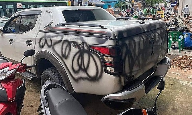Trước đó, không ít lần các chủ xe phải tái mặt khi nhìn những chiếc ô tô của mình bị xịt sơn kín mít xe như trên. Ảnh: Facebook