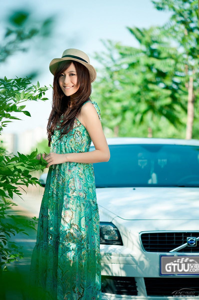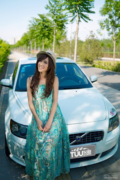 Volvo trắng nổi bật nhờ... thiếu nữ váy xanh