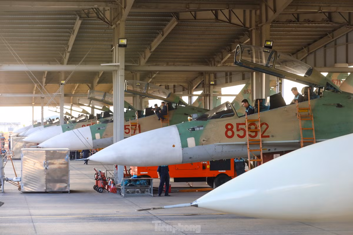Để chuẩn bị cho màn trình diễn trên bầu trời TPHCM sáng 30/4 tới đây, từ đầu tháng 3, nhiều tiêm kích cùng các phi công từ các đơn vị không quân trên cả nước đã tập trung tại sân bay Biên Hòa, Đồng Nai phục vụ cho công tác huấn luyện.
