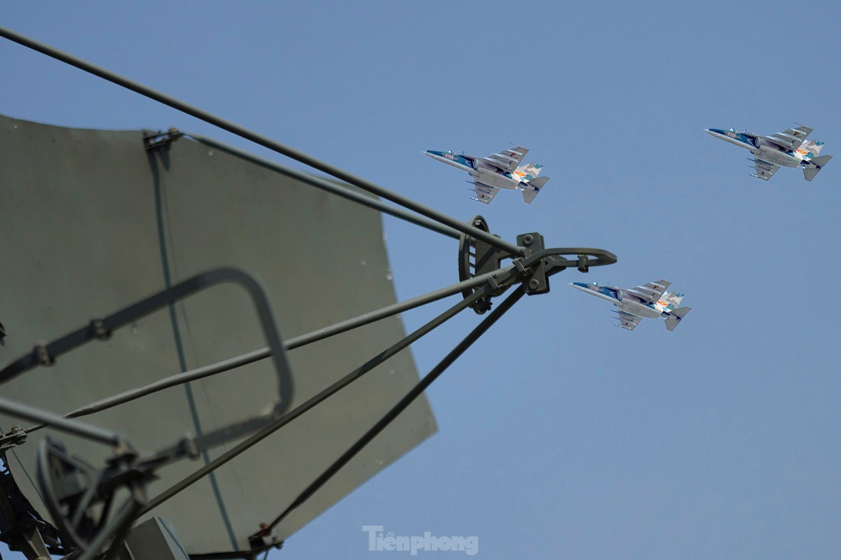 Các phi công cất, hạ cánh tiêm kích bốn lần trong một buổi sáng, tập ghép đội hình, nhào lộn kỹ thuật phức tạp để chuẩn bị trình diễn dịp lễ 30/4.