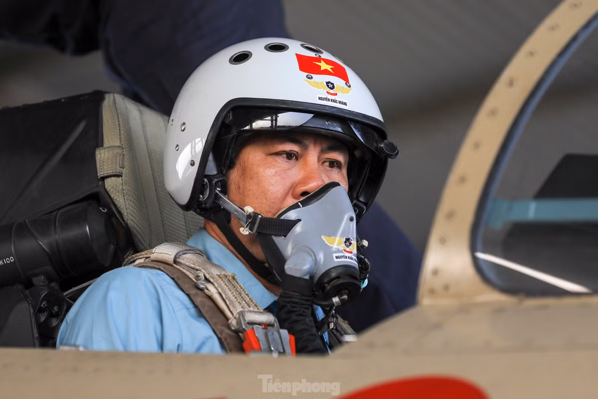 Sau công đoạn kiểm tra các hệ thống trên máy bay, hai phi công ngồi vào buồng lái với mũ bảo hiểm chuyên dụng, đeo dây an toàn, mặt nạ kết nối với hệ thống điều chỉnh áp suất để đưa máy bay ra đường băng.