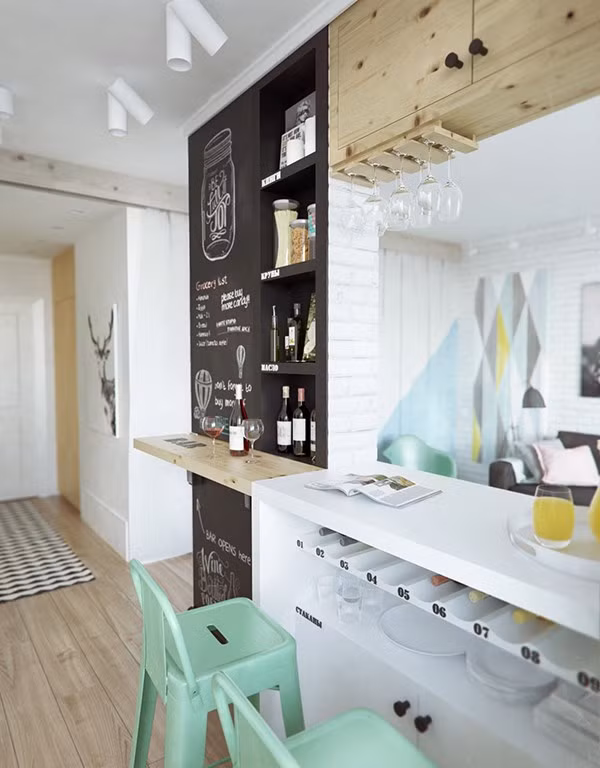 Dù diện tích nhỏ nhưng vẫn có thể thiết kế thêm quầy bar.