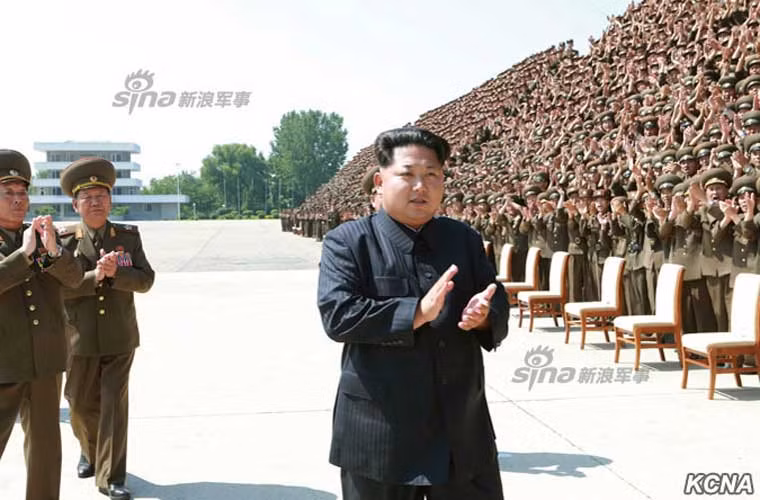 Ông Kim Jong-un vẫy tay chào các chiến sĩ trung thành Quân đội Triều Tiên.