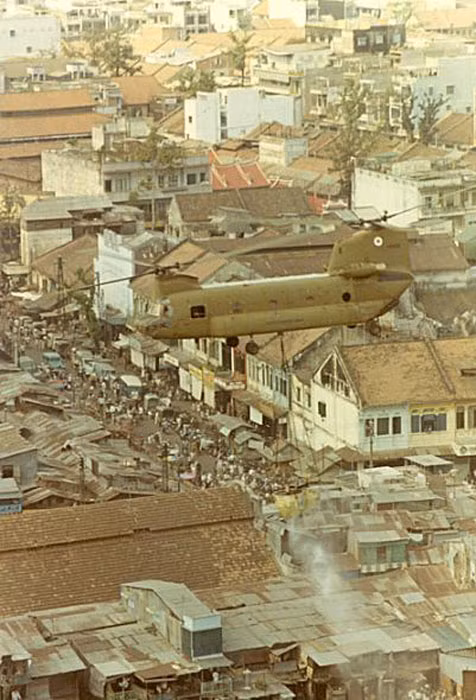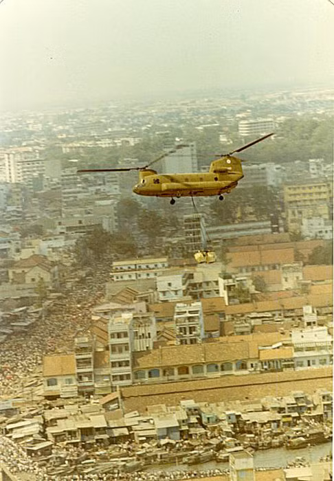 (Kiến Thức) - Chiếc trực thăng cứu hỏa CH-47 “Chinook” của Mỹ đã nhận lệnh bay đi múc nước ở kênh Bến Nghé để dội xuống đám cháy ở chợ cầu Ông Lãnh.