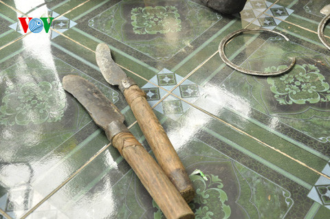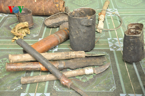 Gùi và dụng cụ lao động của cha con "người rừng".