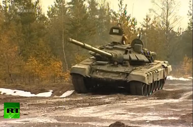 Xe tăng chiến đấu chủ lực T-72 hành tiến.