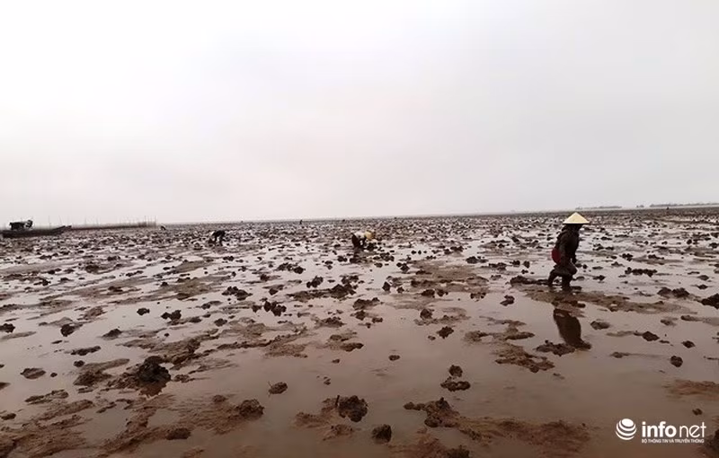 Khi thủy triều rút, những vùng đất ven biển lộ ra cũng là lúc hàng chục người phụ nữ ở vùng cửa biển Hậu Lộc (Thanh Hóa) mang giỏ đi bắt cá còi, ẩn sâu dưới lớp bùn loãng.