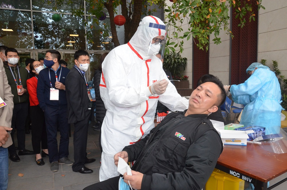 Sáng 29/1, Tiểu ban Y tế Đại hội đã tiến hành xét nghiệm nhanh COVID-19 cho đội ngũ báo chí, an ninh, hậu cần phục vụ Đại hội Đảng lần thứ XIII.