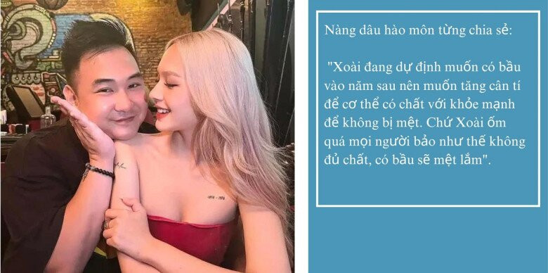 Vào cuối năm 2023, Xoài Non nhiều lần vướng nghi vấn có tin vui khi vóc dáng thay đổi, tròn trĩnh hơn. Sau đó, nàng dâu hào môn chia sẻ: "Xoài đang dự định muốn có bầu vào năm sau nên muốn tăng cân tí để cơ thể có chất với khoẻ mạnh để không bị mệt. Chứ Xoài đợt ốm quá mọi người bảo như thế không đủ chất, có bầu sẽ mệt lắm”.