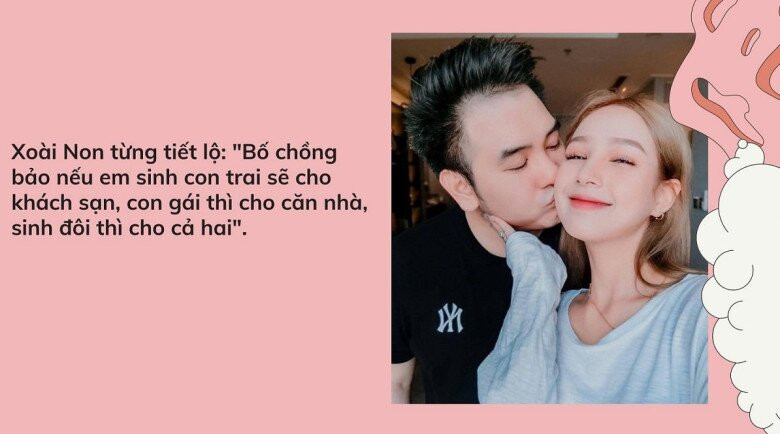 Xoài Non cũng chia sẻ mong muốn có cả bé trai và bé gái, nếu được thì sinh con trai trước để bảo vệ em. Cô từng lên kế hoạch sau khi tổ chức đám cưới sẽ có con ngay, nhưng mọi chuyện không như mong đợi.