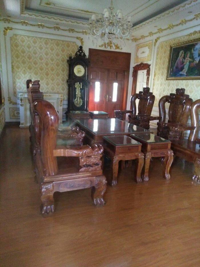 Với kiến trúc châu Âu vô cùng sang trọng, điểm nhấn là một chiếc đồng hồ phong cách châu Âu hoàn toàn làm bằng vàng cùng diện tích khủng nhưng dàn nội thất bên trong được dùng toàn gỗ sang xịn.