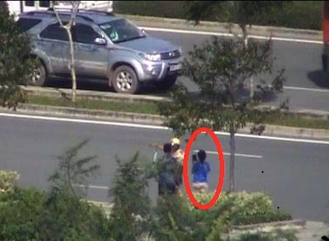 | Người vi phạm đang công khai ghi hình CSGT Rạch Chiếc tại góc giao lộ Đồng Văn Cống- Mai Chí Thọ (quận 2-TP.HCM) chiều ngày 18/8 . |