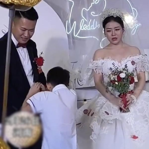Theo đó, đám cưới được tổ chức vào ngày 26/2 vừa qua tại tỉnh Hà Nam, Trung Quốc. Những quan khách tại đây đã không khỏi xót xa khi chứng kiến con riêng của cô dâu khóc lóc ầm ĩ trên sân khấu, cầu xin bố dượng cho mình được đi theo sống với mẹ.
