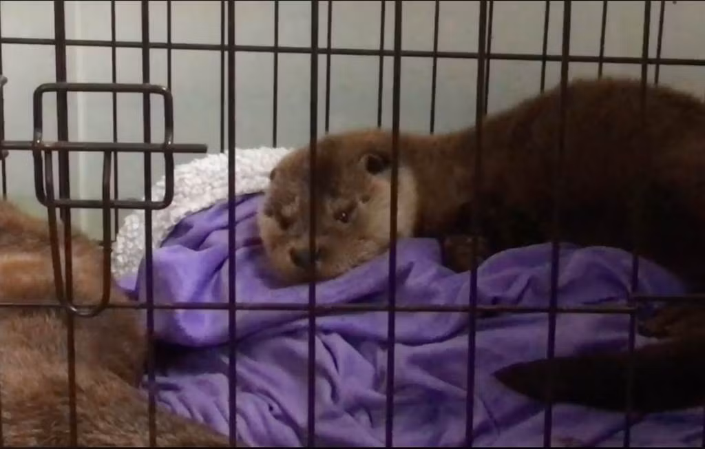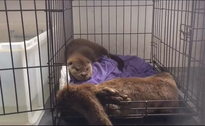 Không thể làm gì hơn, các nhân viên khu bảo tồn quyết định mang thi thể của con rái cá mẹ đi. Thế nhưng khi thấy mẹ bị đưa vào lồng, rái cá con không từ bỏ mà lập tức đuổi theo, nhảy vào lồng sắt.