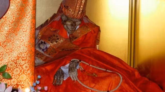 | Xác ướp một nhà sư ngồi trong tư thế thiền “hoa sen”. |