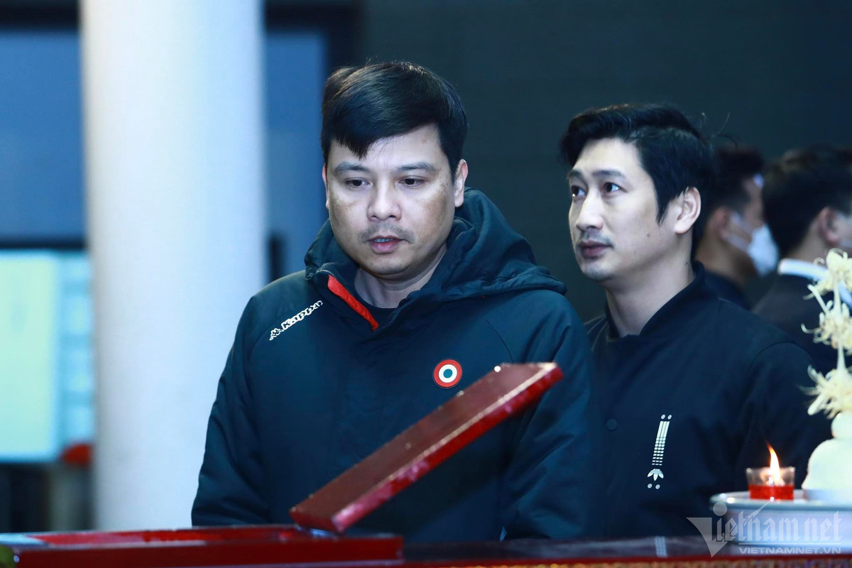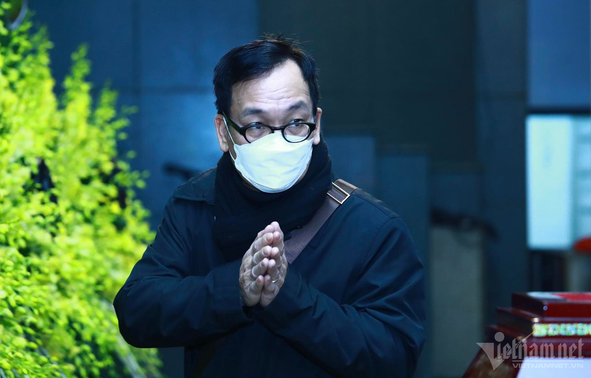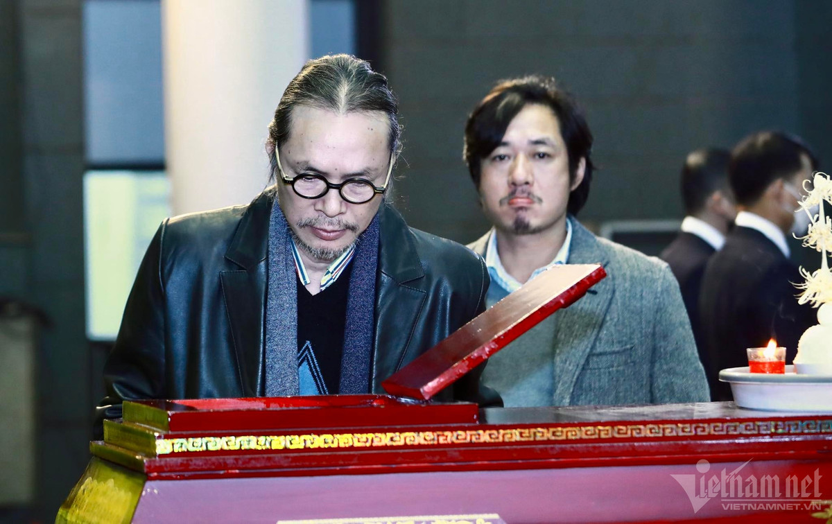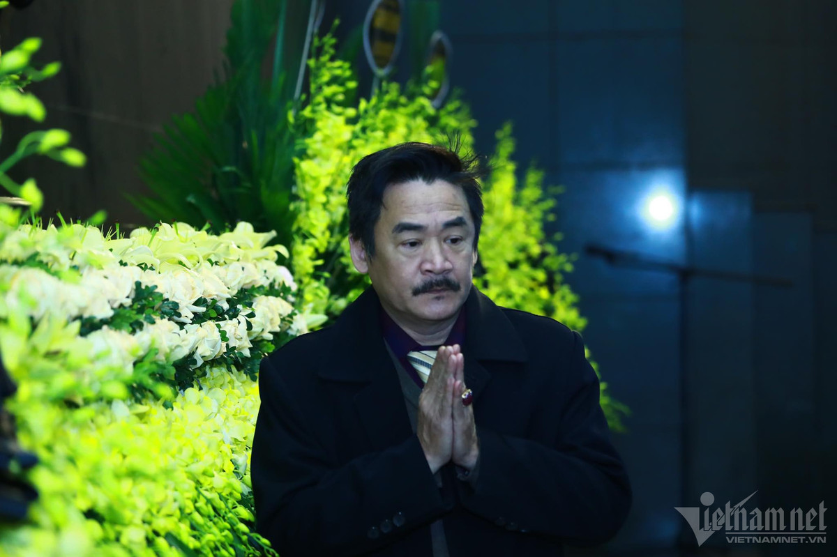 Diễn viên Quốc Tuấn, NSƯT Đức Khuê, Thiện Tùng, NSƯT Sĩ Tiến, NSƯT Chí Trung... bên linh cữu NSND Trần Tiến.