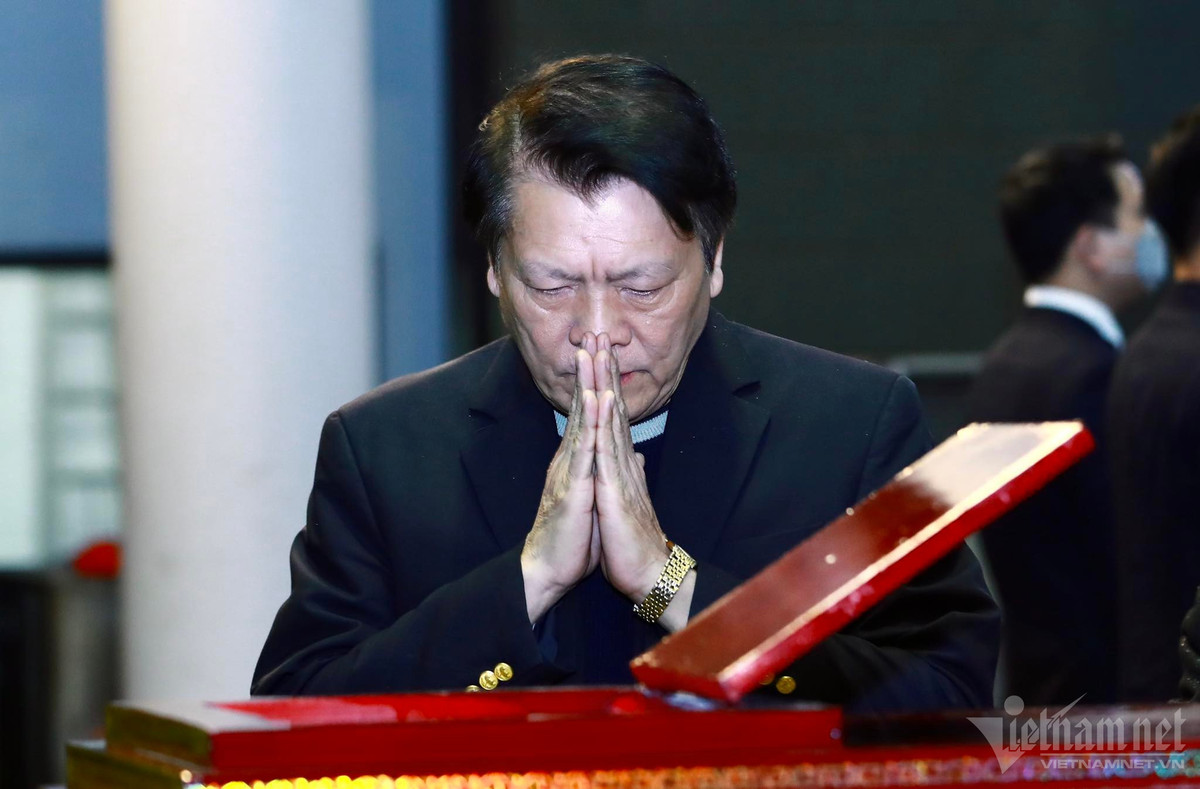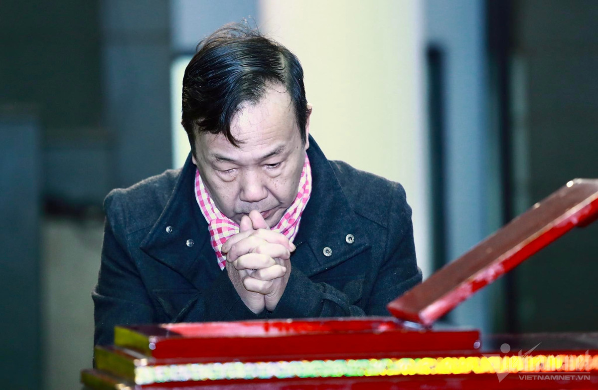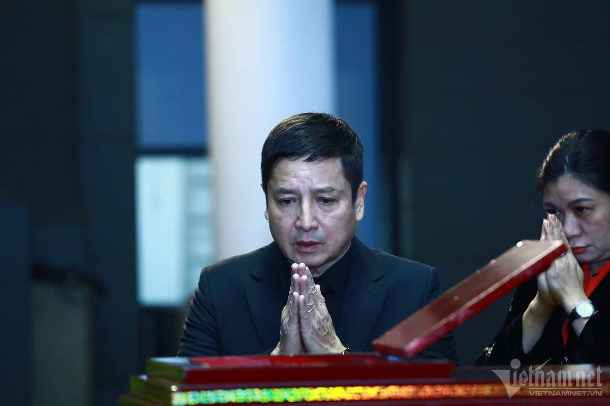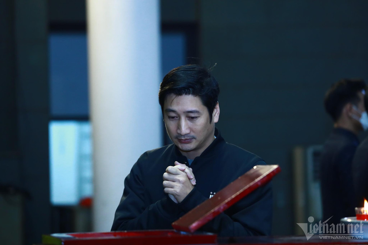 Diễn viên Quốc Tuấn, NSƯT Đức Khuê, Thiện Tùng, NSƯT Sĩ Tiến, NSƯT Chí Trung... bên linh cữu NSND Trần Tiến.